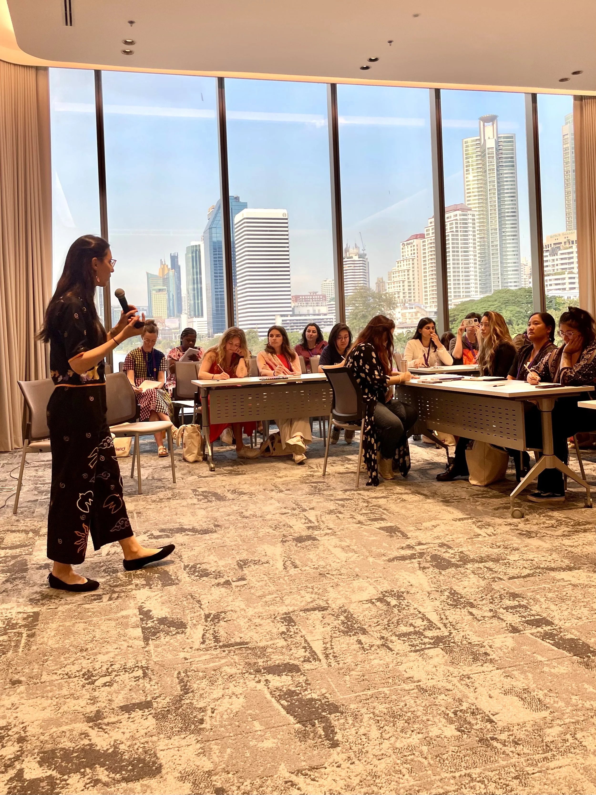 At the AWID Forum in Bangkok, I facilitated a workshop titled Art as a Tool for Social Change, inviting participants from across the globe to explore how creative practice can function as movement infrastructure. Through guided reflection, visual exercises, and small-group dialogue, participants translated the issues they care about into images and narratives that could travel within their communities.